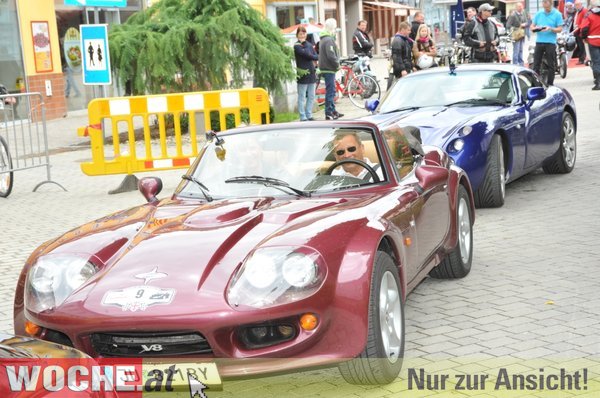 Bei der Wertung sind wir unter Sonderfahrzeuge dabei. Da kann sogar ein TVR von 2016 mitfahren